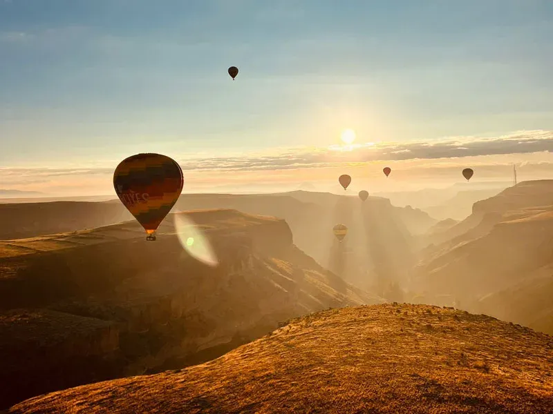 Полет на воздушном шаре в Соанлы — более уединённый и спокойный формат полёта вдали от основной туристической зоны Каппадокии. Здесь вас ждут мягкие рассветные пейзажи, тишина долин и ощущение приватности без большого количества шаров в небе.