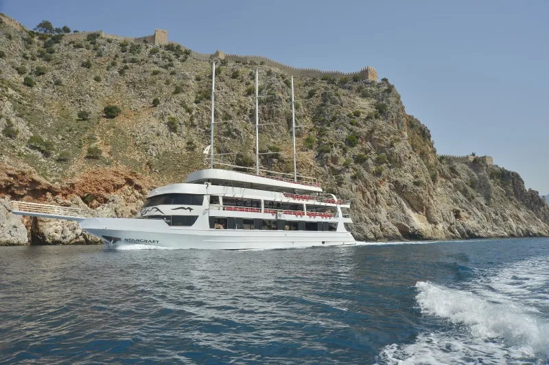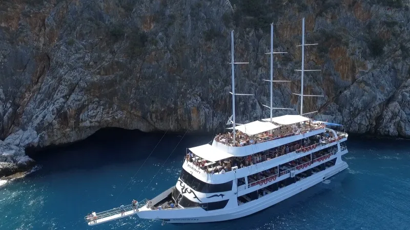 Мы начнём с комфортного трансфера из вашего отеля и отправимся из порта Аланьи в незабываемое морское путешествие.